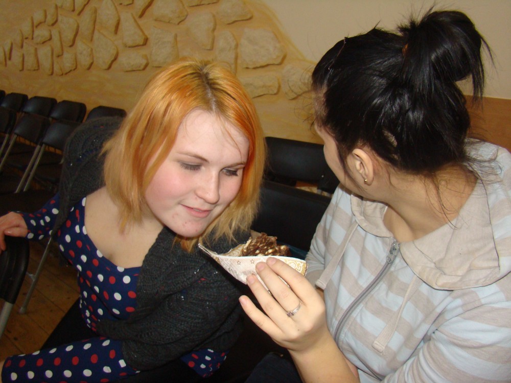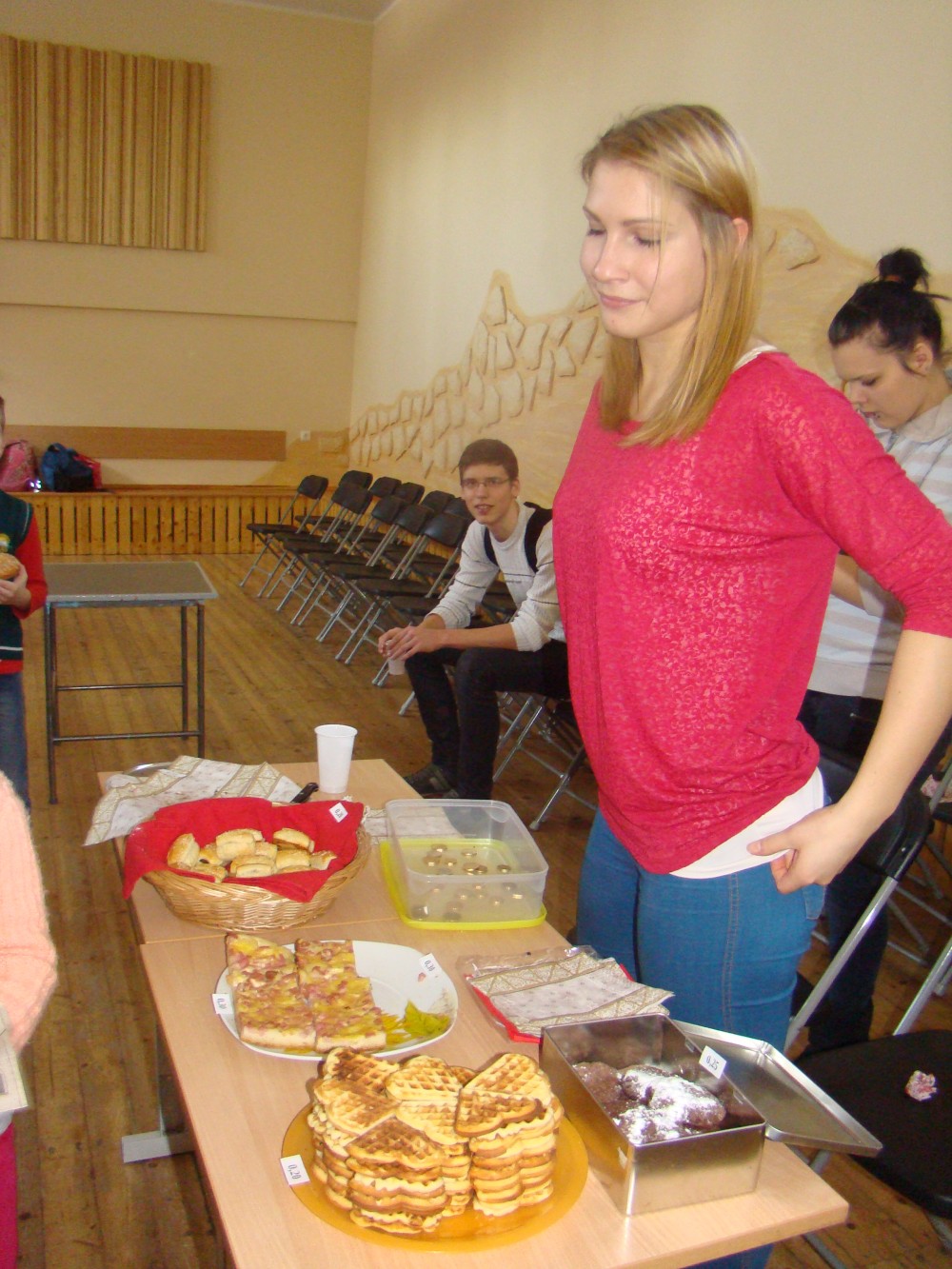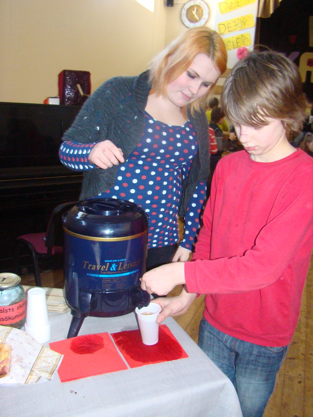 Svētku romantisko noskaņu radījām jau nedēļu pirms Valentīna dienas, kad 6.februārī rosīgākie pavāri no vidusskolēnu vidus bija sagatavojuši pa kādam našķim priekš Valentīndienas Labdarības tirdziņa jeb ‘’Romantiskās pusstundas.’’ Pirkt un pārdot tika aicināts ikviens palīdzēt gribētājs. Paldies mūsu rūķīšiem – Ilondai Dzerkalei, Sigitai Seimanovai, Samantai Montai Galvanovskai, Sintijai Dzerkalei, Elīnai Gabaliņai, Uvai Aivai Spruktei, Viktorijai Matvejevai un Laurai Annai Plūmei par sagatavotajiem k;arumiem tirdziņam! Dalījām tēju, ēdām kēksiņus, klausījāmies vecās, labās mīlas dziesmas – ‘’Love is in the air,’’ ‘’Love Me Tender’’utt., kā arī patīkami un lietderīgi pavadījām laiku. Kopumā mūsu labdarības kontā nonāca 55 eiro, kuri tika virzīti mūsu tālākam mērķim – Valentīndienas ballei ar dzīvo mūziku!