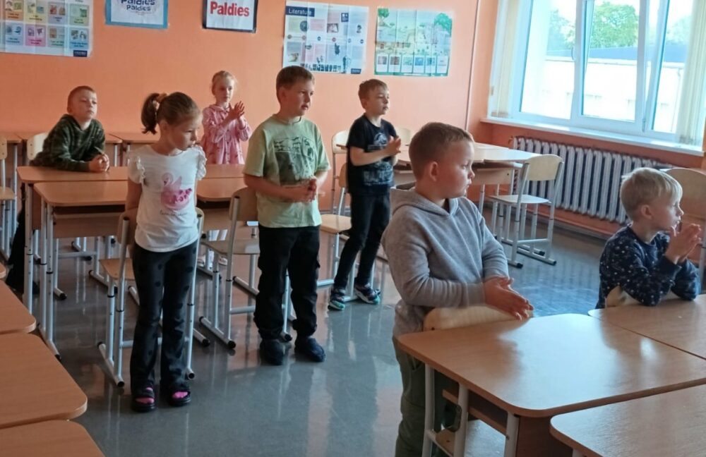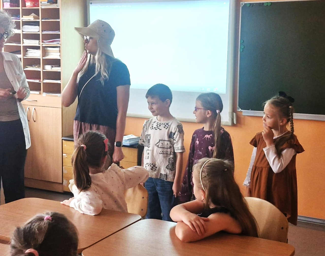 1.-2.klases skolēni ieklausās Spodrītes un profesora Burbuļa padomos