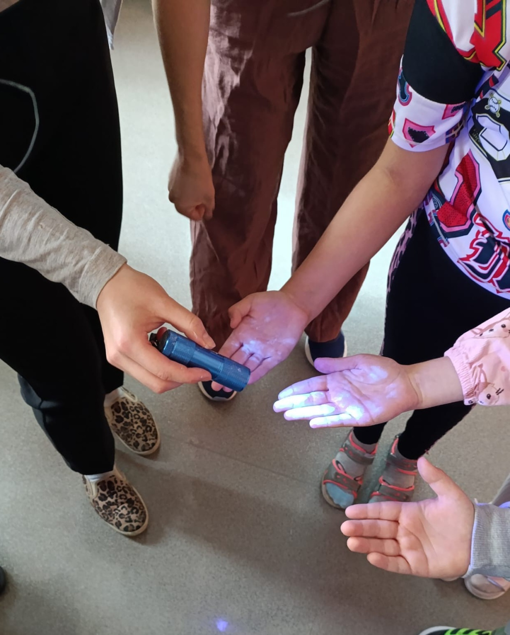 Uzzinājām, ka rokas jāmazgā vismaz 20 sekundes katru reizi, kad esi aizticis kaut ko netīru. Spodrīte stāstīja, ka zobi jātīra katru rītu un vakaru, viņa atgādināja arī par zobu diega lietošanu. Profesors Burbulis parādīja eksperimentu, kas notiek ar olu saldā ūdenī. Tas palīdzēja saprast, kā saldumi bojā zobus.