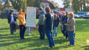 Sadalījušies komandās, saņēmām lapu ar misijām, kuras vajadzēja izpildīt stundas laikā. Manuprāt, tā bija lieliska iespēja iepazīt Skrīverus un uzzināt jaunu informāciju par pagastu. Jauno klašu sastāvu palīdzēja saliedēt tas, ka bija jāsadarbojas ar citām komandām, lai izpildītu vairākus uzdevumus. Mūsu komandai patika uzdevums izveidot reklāmu Skrīveru Jauniešu centram – tajā varējām radoši izpausties, kā arī interesanti bija veidot piramīdu trīs stāvos, jo visiem grupas biedriem vajadzēja būt kadrā, tādēļ nācās lūgt palīdzību citas komandas pārstāvjiem uzņemt fotogrāfiju. Īsts izaicinājums bija atnest spēles vadītājiem vārītu olu, jo kādam tuvāk dzīvojošajam nācās skriet mājās pildīt uzdevumu vai zvanīt tur esošajam radiniekam ar lūgumu to izdarīt. Interesanti bija uzrunāt sastaptos cilvēkus, piedāvājot savu palīdzību kāda darba veikšanā. Daži palīdzēja senioriem stumt ķerru, citi iesaistījās dārza darbos, piemēram, lasīja ābolus.