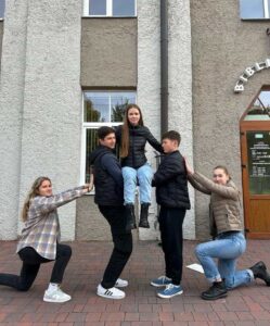 Turpinājumā Skrīveru Mūzikas un mākslas skolas pagalmā mūs sagaidīja firmas ”Piedzīvojumu gars” darbinieki, kuri jau bija sagatavojuši dažādas aktivitātes un pārbaudījumus. Sākām ar kopīgu spēli, kurā vairāk iepazinām cits citu un varējām izkustēties. Tālāk jau visām trim klasēm bija jāsadalās skaitliski vienādās grupās. Tās veidojām stratēģiski, lai katrā būtu gan zēni, gan meitenes.