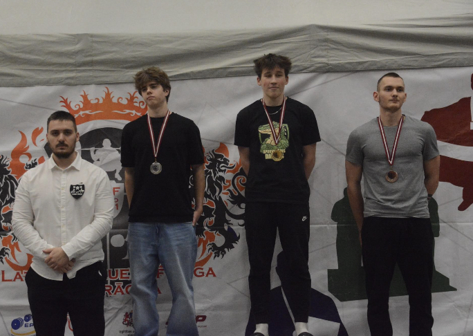Abās šajās sacensībās svara kategorijā līdz 74 kg jauniešiem piedalījās arī Kārlis Gusārovs(10.b). Kopsummā Kārlis ierindojās 3. vietā, jo pacēla 425 kg. Viņš ir ļoti laimīgs par pirmās medaļas iegūšanu, darot to, kas patīk, un gūstot jaunu pieredzi.