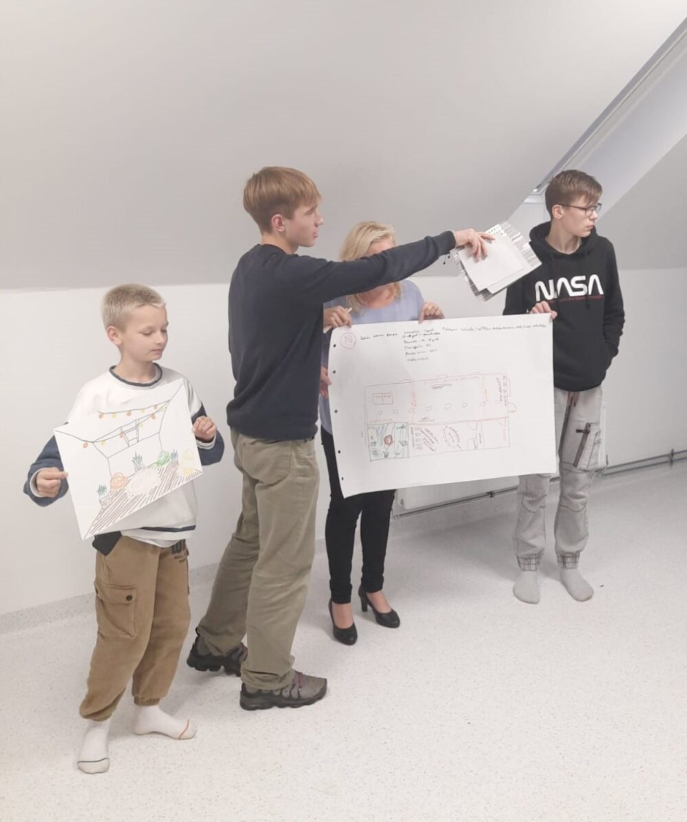 Turpinot mūsu radošo aktivitāti projekta “Ko sēsi, to pļausi” ietvaros, piektdien, 6.10.2023., mūsu telpās notika saruna ar interjera arhitektēm Baibu Rūķi un Ligitu Breği. Jauniešiem bija iespēja uzzināt ko vairāk par interesanto un aizraujošo profesiju, parunājām par ilgtspējīgiem materiāliem, dizaina domāšanu un ļāvāmies radošajam procesam mūsu telpu interjera plānošanā.