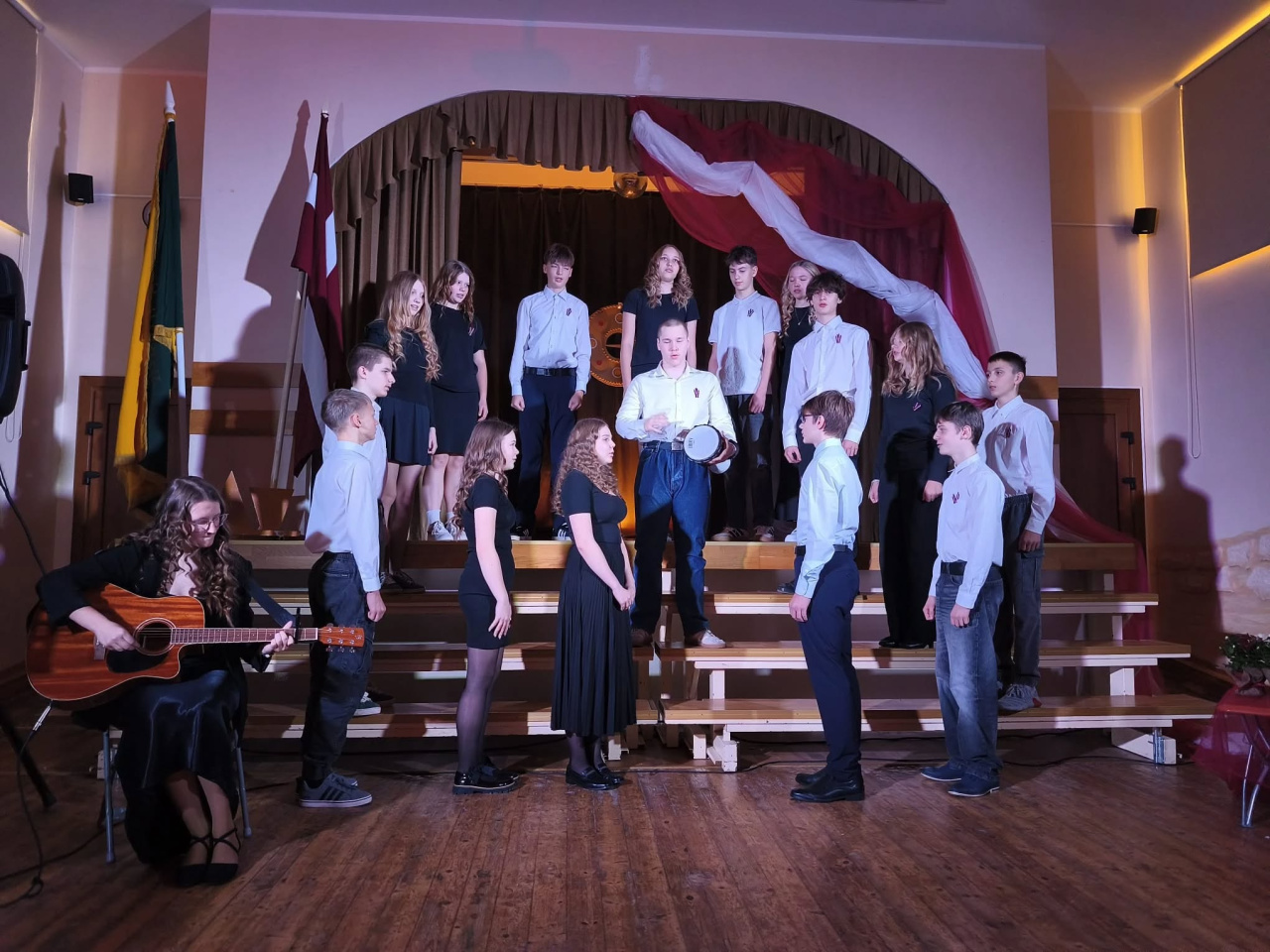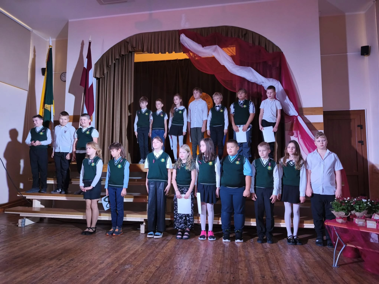 Patriotisko dziesmu diena izskanējusi. Klašu grupā 5.-8.klase par uzvarētājiem kļuva 5.b klase, 2.vieta – 7.b klasei, 3. vieta – 5.a klase.