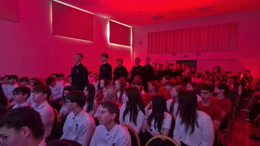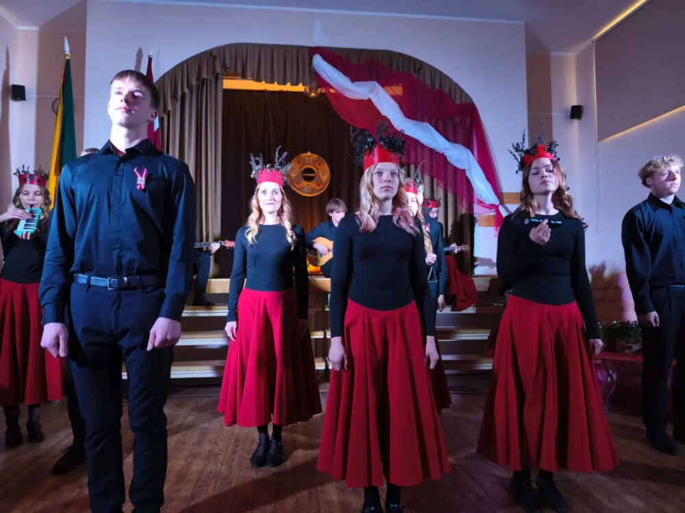 Uzstājāmies piektie, un, noskatoties iepriekšējos priekšnesumus, kuri arī bija ļoti pārdomāti un sagatavoti, iekšējais satraukums pieauga, tomēr kopā kā klase visi viens otru uzmundrinājām un ar cieņu par Latviju devāmies uz skatuves. Iznākums bija labs, viss noritēja tā, kā bijām iecerējuši. Neskatoties uz lielo satraukumu, mūsu sejās bija redzams prieks un gandarījums, kā arī balsis nepievīla un plaši piepildīja visu zāli. Tas pārsteidza mūs pašus, kā klusi dziedošu klasi.