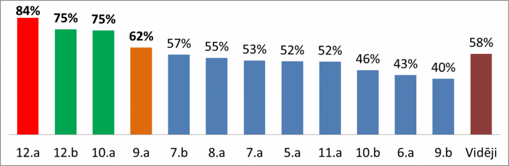 Februāra 2. un 3.konkurss bija liels izaicinājums jauniešiem, jo tajā tika pārbaudītas zināšanas gan par jauno ministru kabinetu un vēsturisko kristīgās baznīcas vadītāju tikšanos Havanas lidostā, gan par citiem aktuāliem jautājumiem. Skolēni ar konkursa abām kārtām tika galā veiksmīgi – uz to norāda rezultāti, kas viennozīmīgi priecē. Tāpat esmu gandarīts, ka ar katru reizi skolēnu skaits, kuri ir ieguvuši 100% izpildes rādītāju palielinās, šoreiz sastādot attiecīgi 12% un 14%! Lūk, klašu rezultāti!