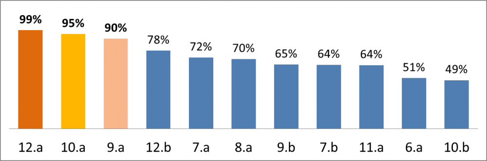 Janvāra 4.nedēļas konkursā skolēnu zināšanas tika pārbaudītas aktuālajās norisēs ekonomikas, poltikas un kultūras jomās. Prieks, ka visi skolēni, kuri piedalījās, atbildēja uz jautājumu, kādam notikumam notika 25 gadu atcere – Barikāžu laika notikumiem. Apsveicu 12.a klasi ar 1. vietu, tāpat jāuzslavē 10.a un 9.a klašu skolēni! Pārējie rezultāti ir redzami diagrammā!