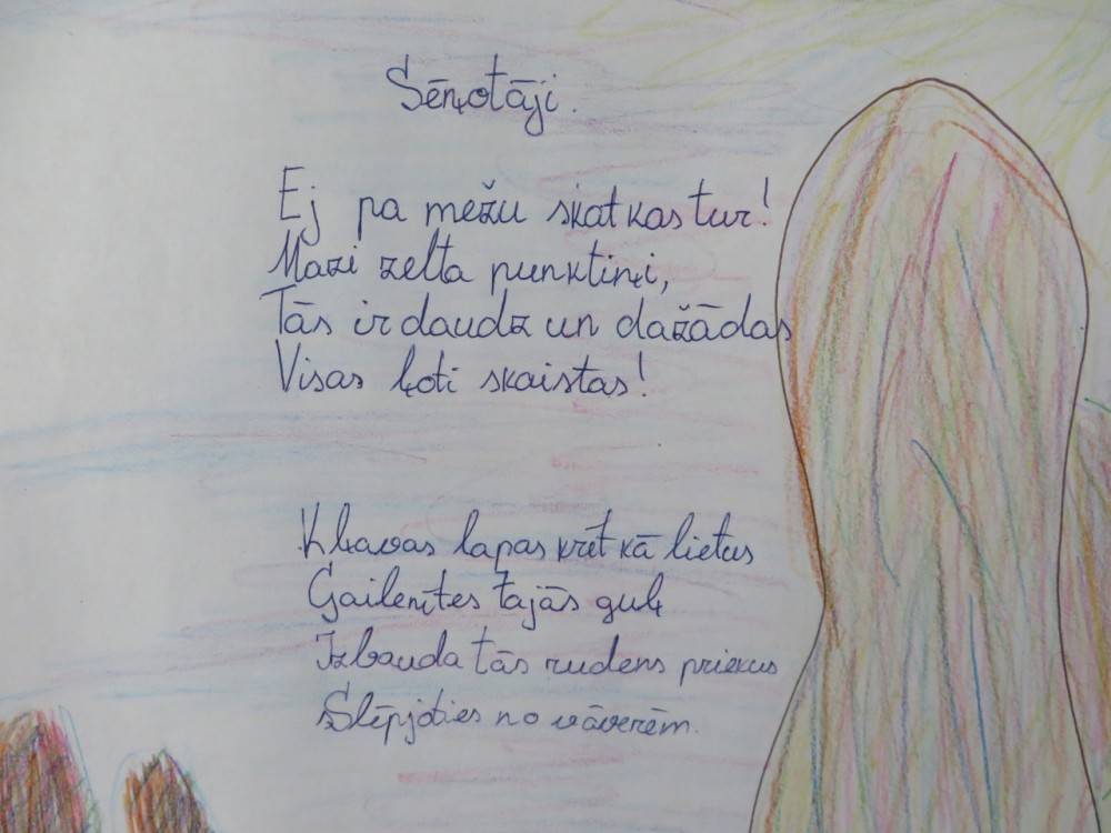 12. klašu skolēni veido prezentācijas par dažādām tēmām, lai tuvāk iepazītu šos divus dižgarus, pārlasām Raiņa lugas un dzeju. 5.- 12. klašu skolēni dzejo arī paši, skaisti noformē savus darbus, kurus var aplūkot skolas 2. stāva vestibilā, te var ieraudzīt arī īstus mākslas darbus. 1.- 4. klašu skolēni iepazīst dzeju stundās, kā arī mācās dzejoļus no galvas. Vairāk skolēnu gara darbu – GALERIJĀ!