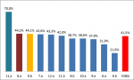 Apkopojot septembra mēneša 4.nedēļas rezultātus, redzama simpātiska aina: favorīti – nemainīgi – 11.a klase, bet otrā un trešā vieta, kā ierasts mainīgas, šajā nedēļā – 8.a un 7.a klasēm! Šajā nedēļā arī vienai pamatskolas un vienai vidusskolas meitenei ir izdevies sasniegt augstāko – 100% pareizi iesniegto atbilžu atzīmi! Apsveicam! Pārējos rezultātus skat. diagrammā: