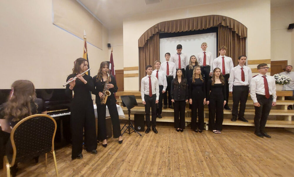 Patriotisko dziesmu skatē 9.-12.klašu posmā par laureātiem kļuva: