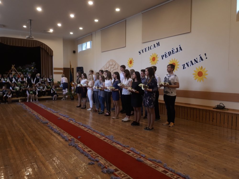 Ceturtdien, 17.maijā, skolā skanēja pēdējais zvans 12.klašu skolēniem. Šo dienu īpašu padarīja gan 1., gan 11. klašu skolēnu sagādātie patīkamie pārsteigumi. Pirmās klases skolēni sveica topošos absolventus ar lielisku koncertprogrammu, kurā netrūka ne deju, ne dziesmu. Kā uzsver 1.klases audzinātāja M.Arcihoviča: “Skolēni ilgi gatavojās un darīja to ar lielu atbildību, jo 12.klases skolēni viņus ieveda skolā.” Savukārt 12.klašu skolēni bija sarūpējuši jau tradicionālo vērtību – rupjmaizi – tikai šoreiz ar katra 12.klases skolēna iniciāļiem. Tāpat topošie absolventi tika pavadītu uz bērnudārzu, kur locīja papīra kuģīšus, kurus pēc izbrauciena ar kuģi “Baltā kaza” palaida Daugavā ar domu, lai piepildās iecerētie sapņi un sapnīši!