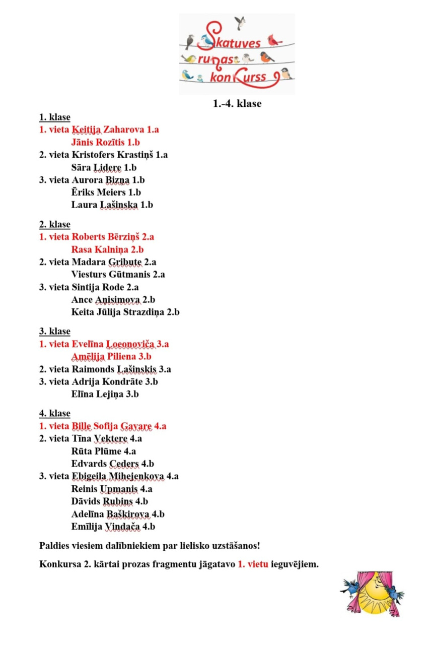 Paldies visiem dalībniekiem, vecākiem un skolotājiem par ieguldīto darbu talanta attīstībā un uzstāšanās prasmju veidošanā!
