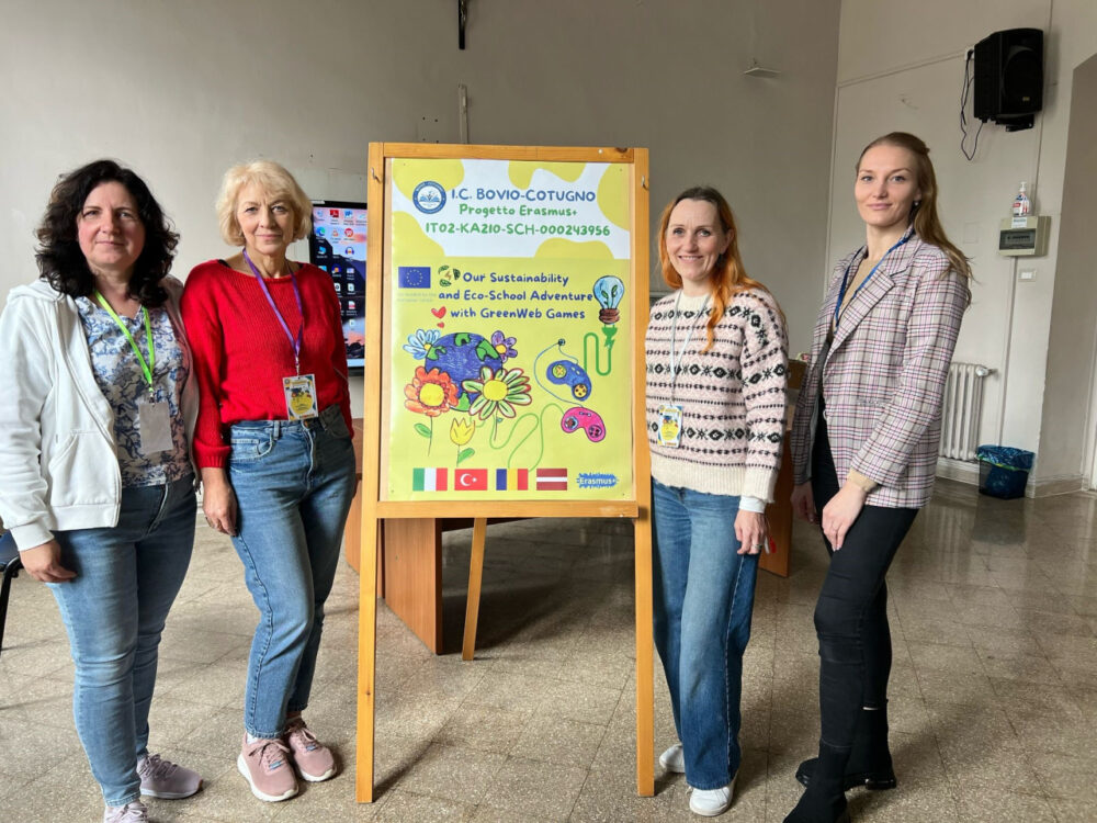 No 17.02.-21.02.2025. četras Andreja Upīša Skrīveru vidusskolas skolotājas – Danute Podvinska, Ance Krastiņa, Maija Arcihoviča un Santa Mārtinsone – piedalījās Erasmus+ projektā Nr. 2024-1-IT02-KA210-SCH-000243956, “Our Sustainability and Eco-School Adventure with GreenWeb Games” (‘Mūsu ilgtspēja un eko-skolas piedzīvojums ar zaļajām spēlēm internetā”). Projekta mobilitāte norisinājās sākumskolā IC Bovio Cotugno, pilsētā Ruvo di Puglia, Itālijā.