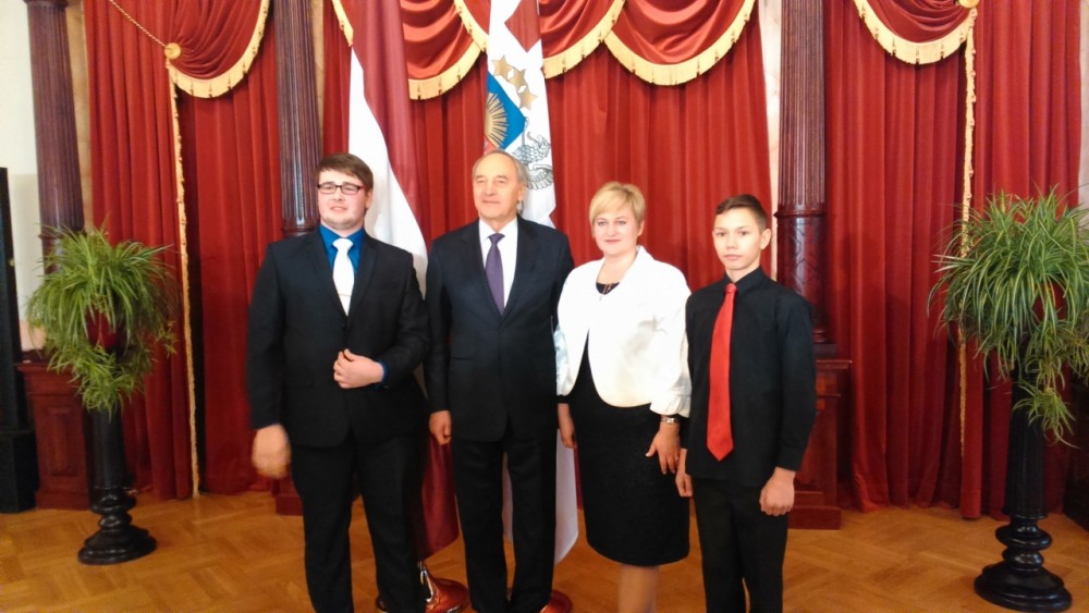 Šā, nu jau Jaunā gada 8. Janvārī Rīgas Latviešu biedrības veidotā radošo darbu konkursa gan pirmās, gan otrās kārtas uzvarētāji tika ielūgti vizītē pie Latvijas Valsts prezidenta Andra Bērziņa. No mūsu skolas uz šo svinīgo pasākumu tika uzaicināti divi skolēni, es – Armands Bērziņš – un pirmās kārtas uzvarētājs, skolas absolvents Rūdis Eiduks.