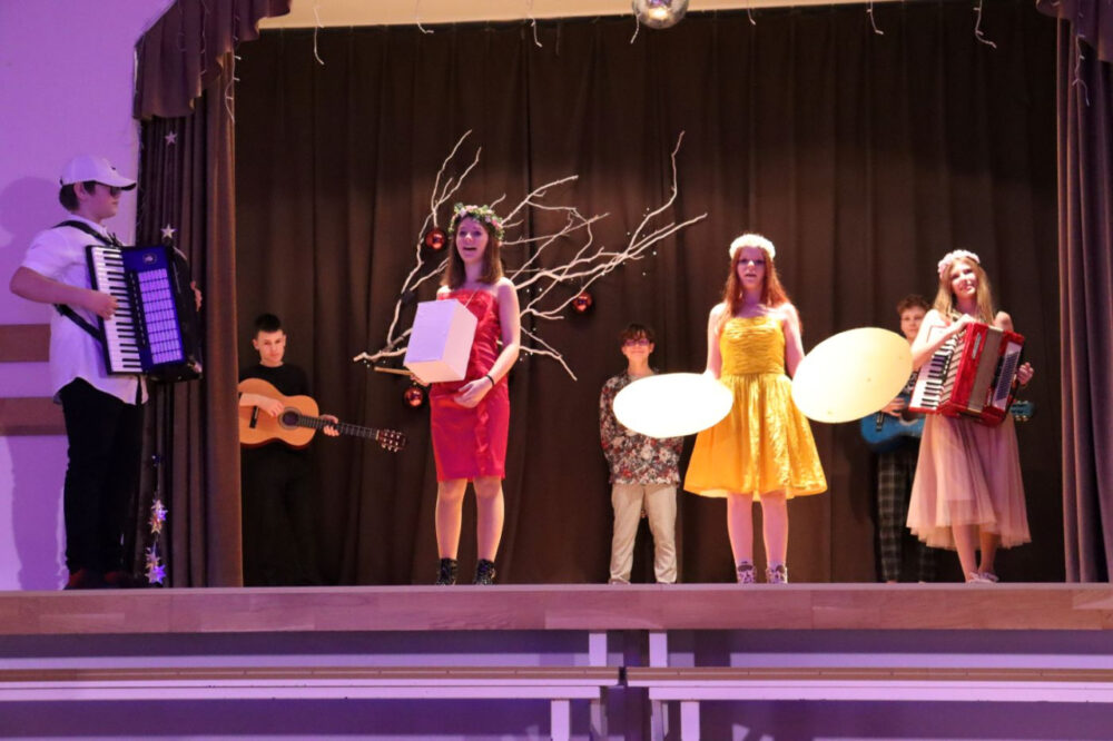 Toties pamatskolas un vidusskolas skolēni Ziemassvētkus aizvadīja „Popielas” garā. Bija vērojami aizrautīgi teatrāli priekšnesumi, dejas un dziesmas. Pasperot soli ārpus savas komforta zonas, bijām liecinieki tam, kā dzimst jauni talanti.