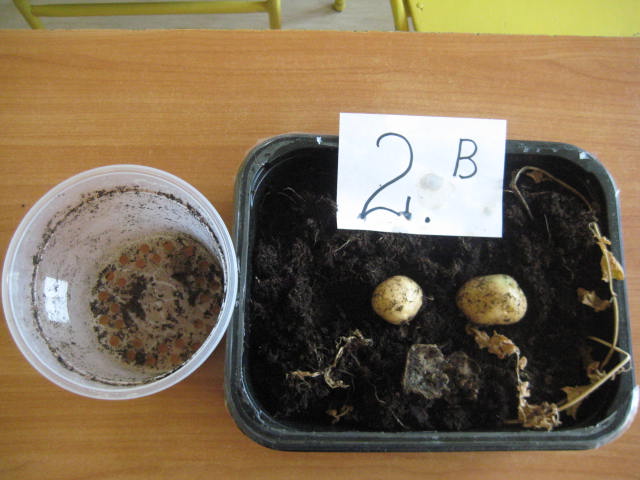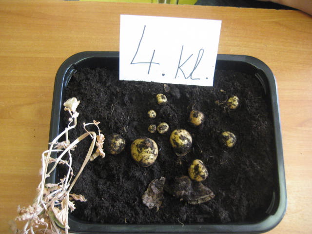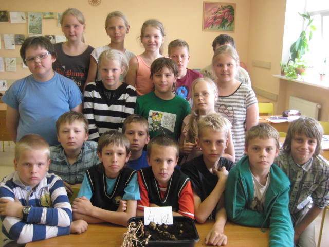 Sākumskolas 2.,3.,4.klašu dabaszinību pētījums “Kā klasē uz palodzes var izaudzēt kartupeļus?” noslēdzies. Kartupeļus iestādījām janvāra beigās un katru dabaszinību stundu pierakstījām novērotās pārmaiņas kartupeļa dienasgrāmatā. Maija beigās apkopojām neparastā pētījuma rezultātus: 2.b klasei izauguši divi, bet palieli kartupeļi,kuru apkārtmērs ir 13×15 cm un 11x12cm; 4.klasei nedaudz mazāki – pēc skaita 11; 3.klasei- pieci, bet 2.a klasei 13, bet mazāki.