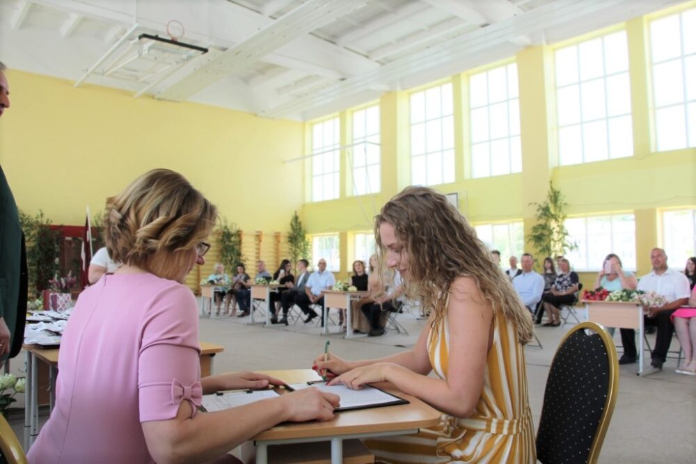 13. jūnijs –svarīgs datums šī gada 9.klašu absolventiem. Šis ir datums, kurā bijušie 9.klasnieki saņēma apliecības par pamatskolas beigšanu. Protams, apsveikumu runas bira kā no pārpilnības raga: sveica gan domes izpilddirektors Andris Zālītis, vecāku pārstāvji, skolas direktors Aldis Rakstiņš, klases audzinātājas Sintija Rūze un Inta Šreibere. Muzikālu apsveikumu sniedza mūzikas skolas skolotāju ansamblis.