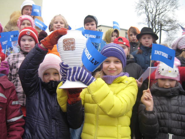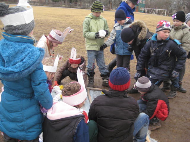 Pēc kristīgo pasaules kalendāra 4.marts šogad atzīmējams kā Meteņu diena.Tā ka šogad ziema bija diezgan paskopa uz sniegu un iecerētā Pasaules sniega diena nevarēja notikt, tad mēs kopā ar Skrīveru novada sporta instruktori Zigrīdu Sprukti nolēmām sarīkot atvadas no ziemas ar imitētā sniega elementiem. Pasākumu rīkojām divos laikos: 1.-4.klašu skolēniem plkst.12.00, bet pamatskolas klasēm 15.20. Pēcpusdienā saulīte palutināja bērnus nedaudz vairāk. Skolēniem nācās pildīt uzdevumus 6 stacijās. Tās bija dažādas stafetes, “piku” mešana grozā, ‘slēpošana”, “ledus”skulptūru veidošana, ziemas gleznu “uzburšana”uz balona, rāmītī. Noslēgumā 1.-4. klases saņēma ceļojošo kausu, bet 5.-8. klašu grupā 1. vietu un turēt ceļojošo kausu savā klases telpā martā un maijā ieguva 6.klases komanda, bet 8.b klase ieguva 2. vietu un varēs paturēt ceļojošo kausu savā klases telpā aprīlī.