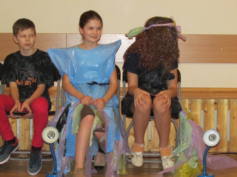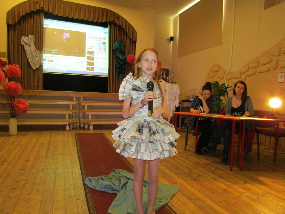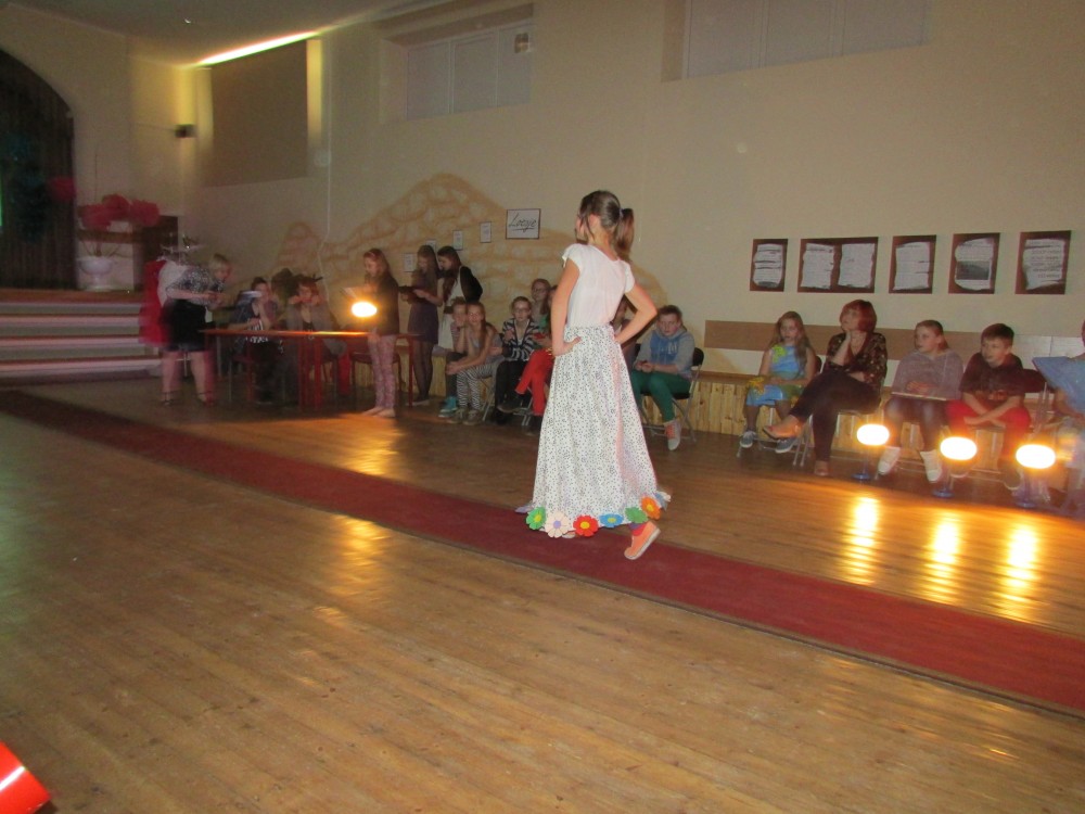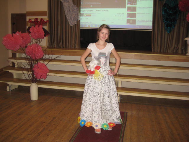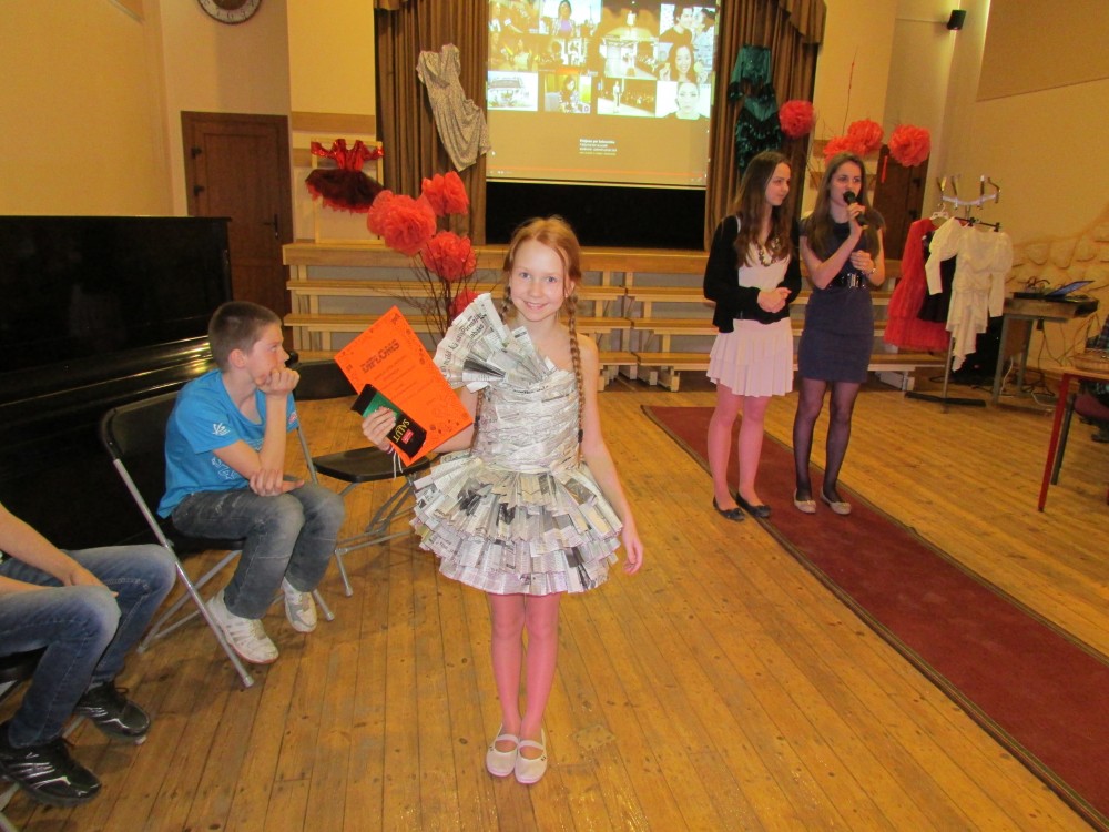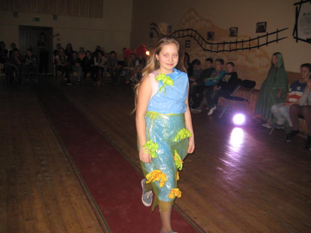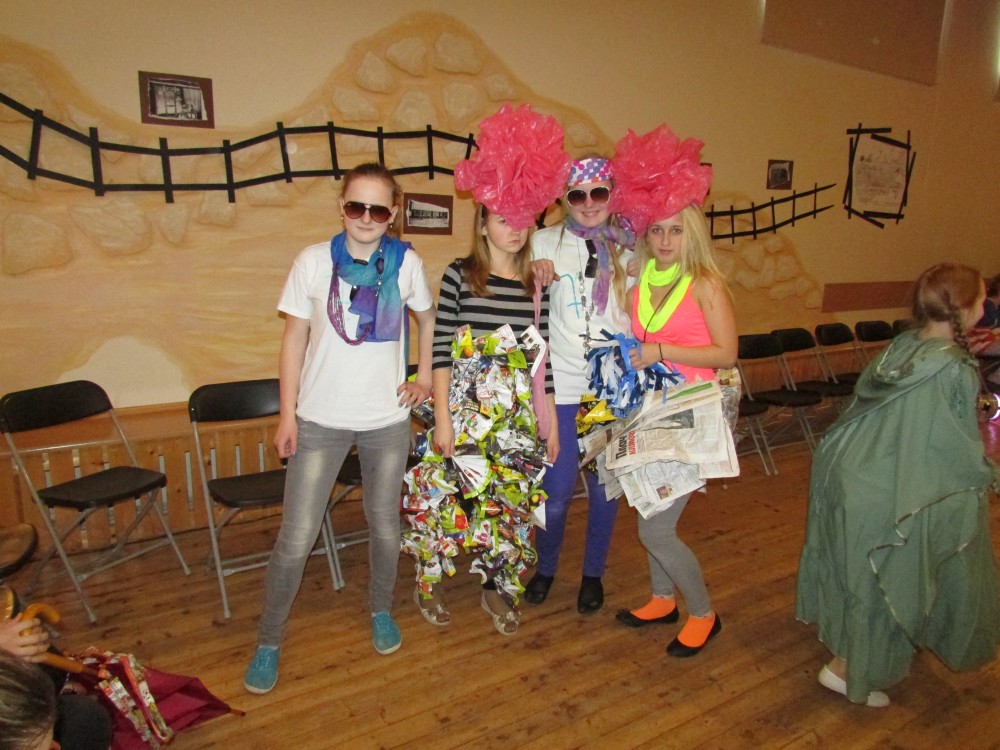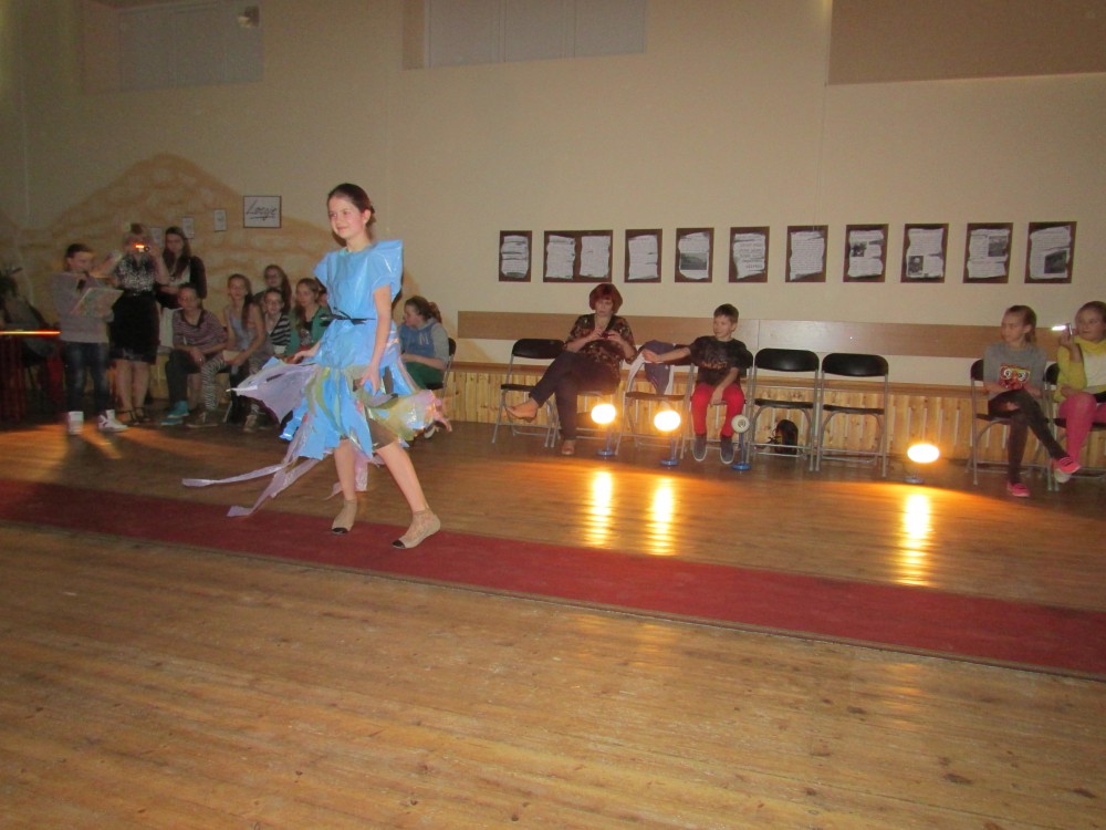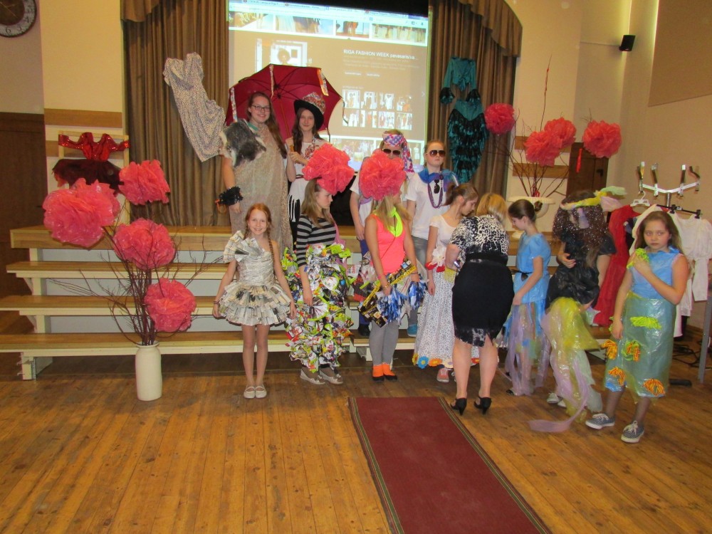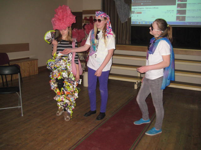 Tā kā skola iesākusi eko skolu ceļu, tad nolēmām attīstīt skolēnu radošo domāšanu, izmantojot jau reiz lietotus materiālus. Kopumā pagatavoti bija 9 tērpi.Visčaklākā izrādījās 5.a klase, kura radoši iekļāva reiz lietotos materiālus,pagatavojot trīs tērpus Arī 7.a klases bērni bija pacentušies.Viņu darbu arsenālā bija divi tērpi.Pārējie skatītāju uzmanībai veltīja vienu tērpu.Paldies visiem, kuri atbalstīja šo pasākumu.