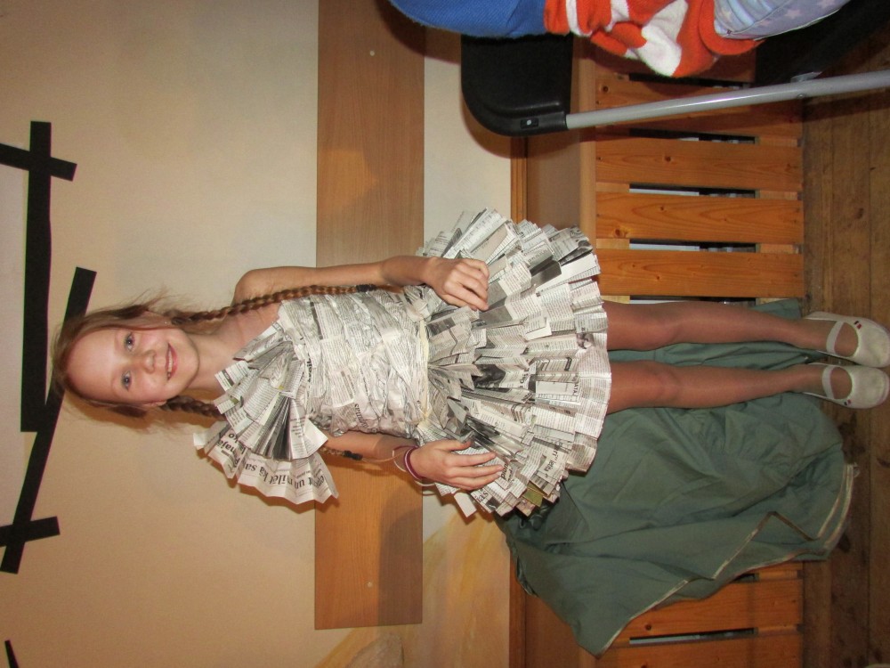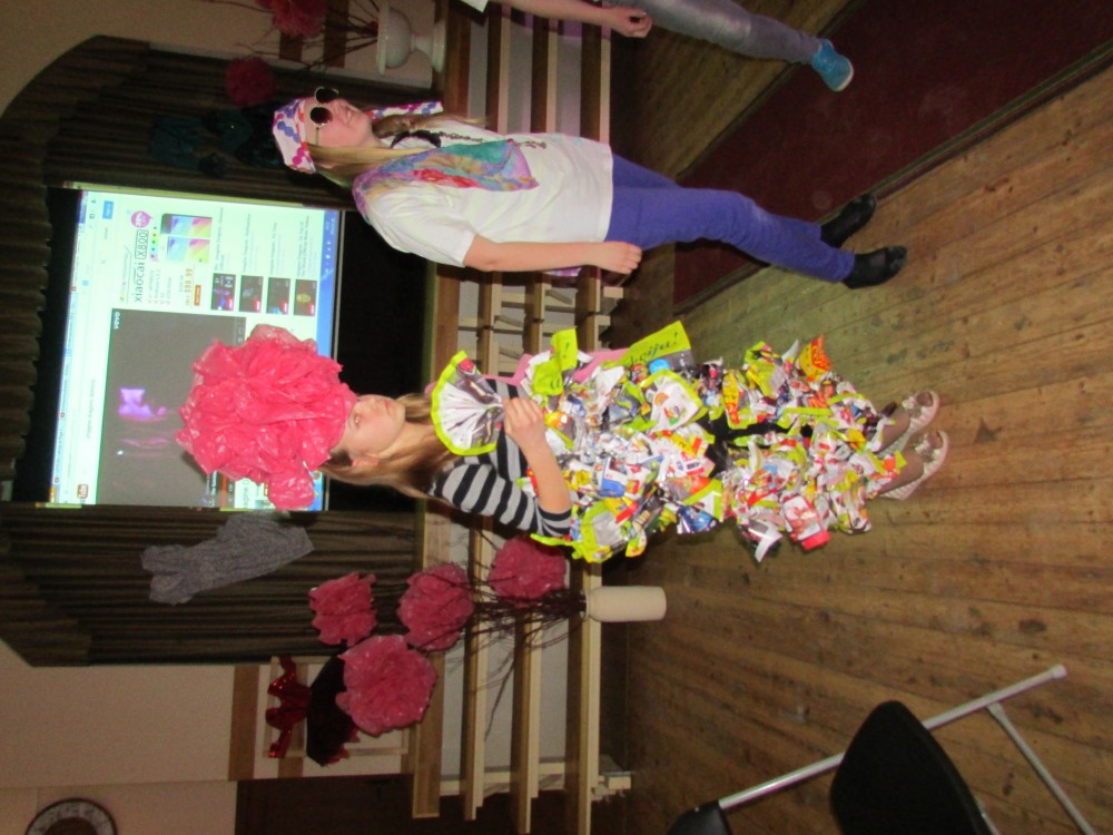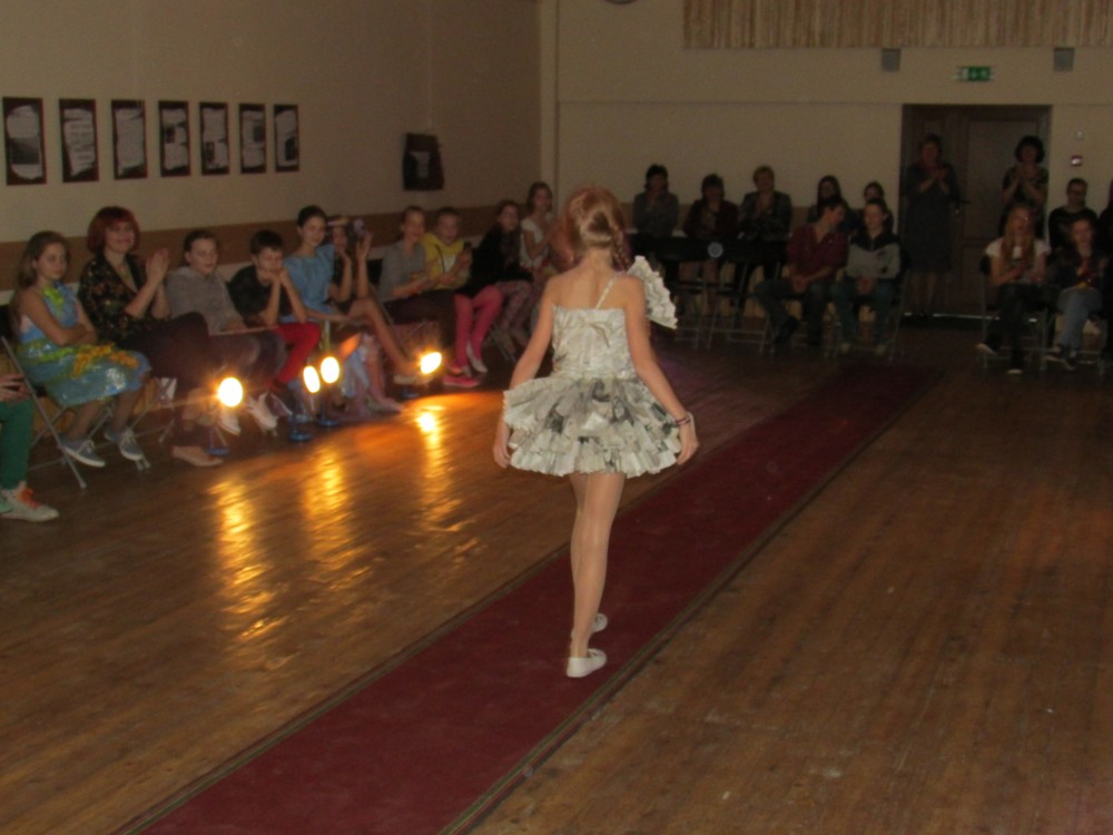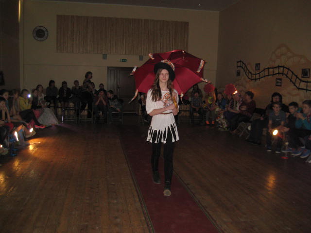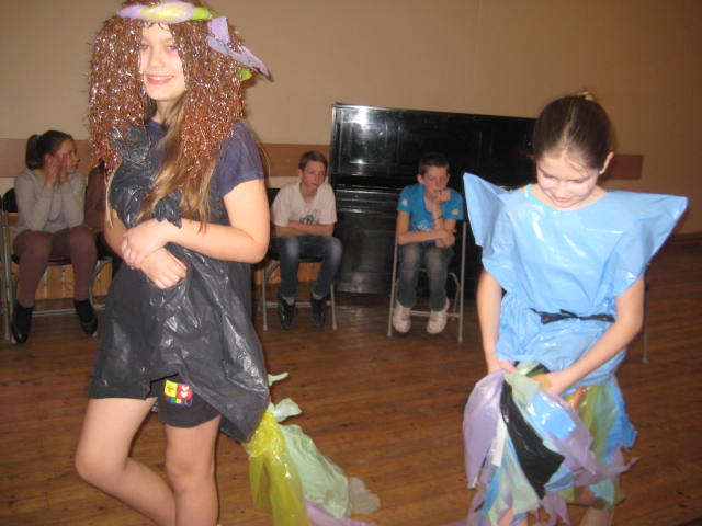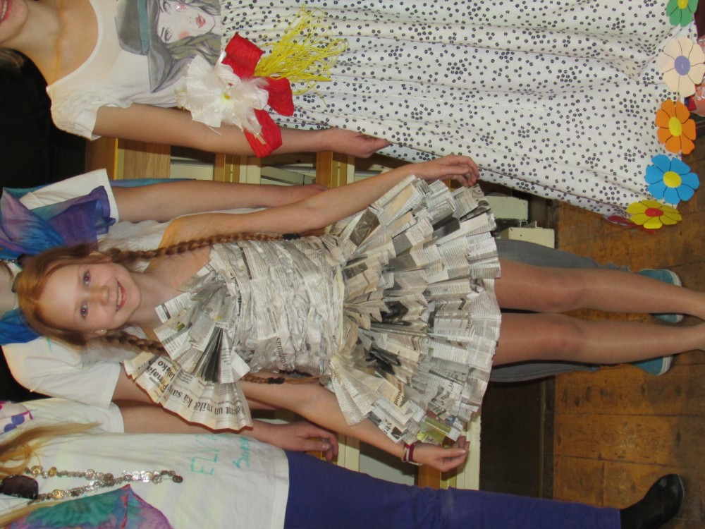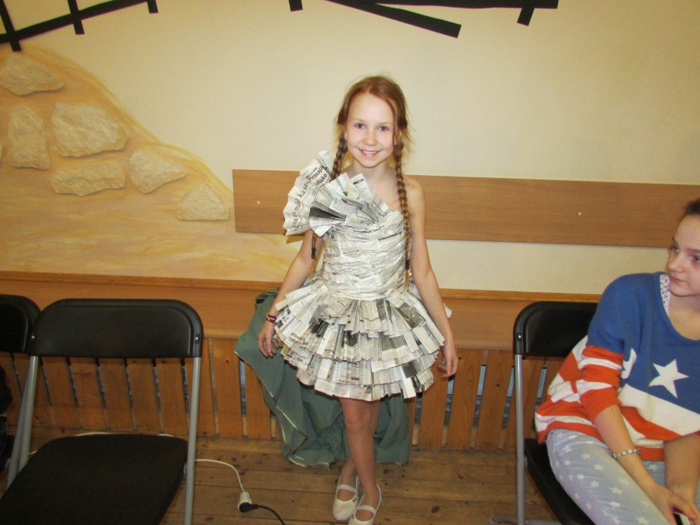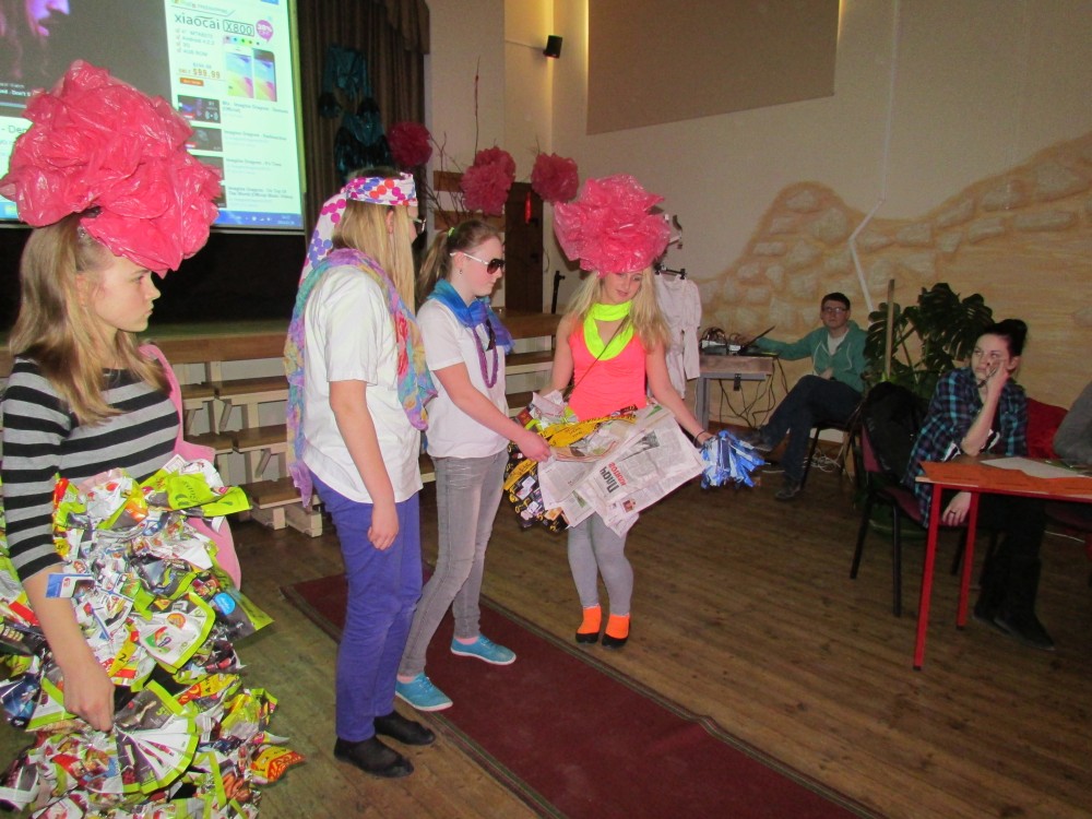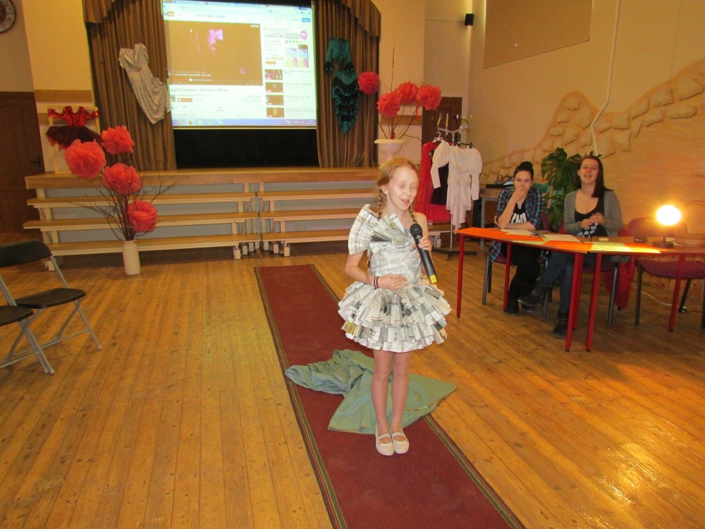 Tā kā skola iesākusi eko skolu ceļu, tad nolēmām attīstīt skolēnu radošo domāšanu, izmantojot jau reiz lietotus materiālus. Kopumā pagatavoti bija 9 tērpi.Visčaklākā izrādījās 5.a klase, kura radoši iekļāva reiz lietotos materiālus,pagatavojot trīs tērpus Arī 7.a klases bērni bija pacentušies.Viņu darbu arsenālā bija divi tērpi.Pārējie skatītāju uzmanībai veltīja vienu tērpu.Paldies visiem, kuri atbalstīja šo pasākumu.