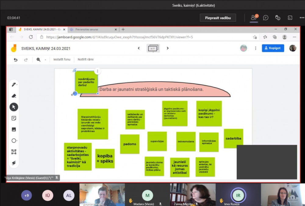 Turpinot iesākto darbu pie jomas izpētes, šī gada 24.martā satikās 18 jaunatnes jomas darbinieki no sešiem novadiem, kuri projekta 6.aktivitātes ietvaros veica detalizētu novadu jaunatnes darba situācijas izpēti, salīdzināšanu un izvērtēšanu, analizējot jaunatnes jomas stiprās un vājās puses, izprotot draudus un saredzot milzum daudz iespēju attīstībai, kā arī starpnovadu un starpinstitucionālās sadarbības veicināšanai.