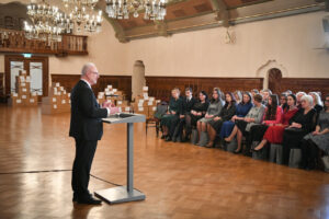 2023.gada 15.februārī Rīgas pilī notika Satversmes debašu cikla “#Satversmei100: vērtības nākotnei” svinīgs noslēguma pasākums, uz kuru tika aicināti jaunieši, viņu skolotāji un skolu direktori no 28 Latvijas skolām. Katrs pasākuma dalībnieks saņēma diskusiju izziņas materiālu “Jauniešu debašu cikla domu un atklāsmju apkopojums”.