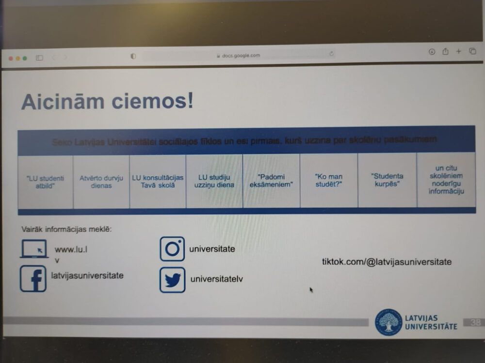 Šodien, 16. februārī, 12.klases skolēniem Zoomā notika tikšanās ar bijušo mūsu skolas absolventi –tagadējo LU studenti Agati Albekeiti un studentu pašpārvaldes vadītāju Līgu Gavari par izglītības iespējām Latvijas universitātē, īpaši par ģeogrāfijas un zemes zinātņu fakultāti. Zoomā pieslēdzās 26 dalībnieki. Skolēni neklātienē pabija LU, iepazinās ar studentu dzīvi, nodibināja kontaktus ar studentiem, uzzināja skolēnu iespējas jau tagad, gatavojoties kļūt par studentiem. Karjeras dienas GZZF norisinās no 15.-18.02. katru vakaru plkst 19.00 Google. Meet vidē, bet 16.02. ar saiti ej.uz/gzzfkd