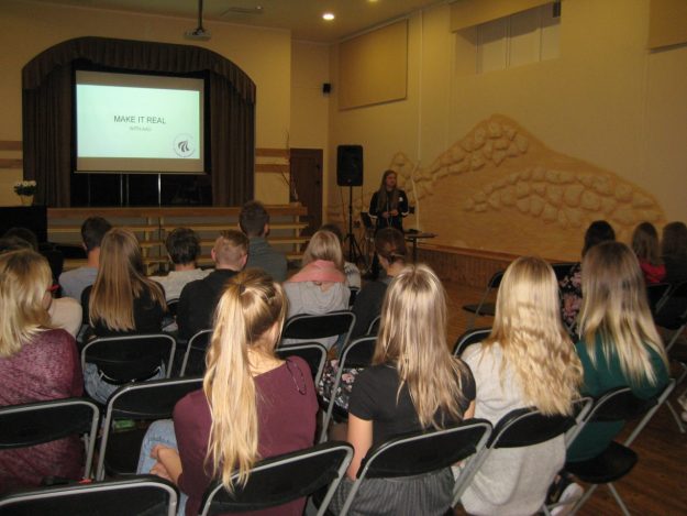 12.novembrī skolas aktu zālē ar 11. un 12. klašu skolēniem tikās ar Montu Lauru Rubeni, kas iepazīstināja ar viņas mācīšanās pieredzi Osborgas universitātē Dānijā. Viņa iepazīstināja gan ar akadēmiskajām, gan sociālajām un sabiedriskās dzīves iespējām, ko piedāvā Dānijas augstskolas. Pēc saistošas lekcijas sekoja jautājumu un atbilžu sesija, kurā skolēni izzināja visus sev neskaidros jautājumus.