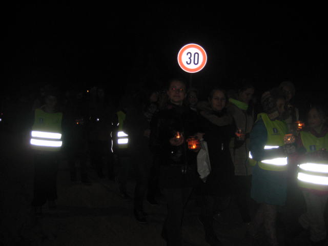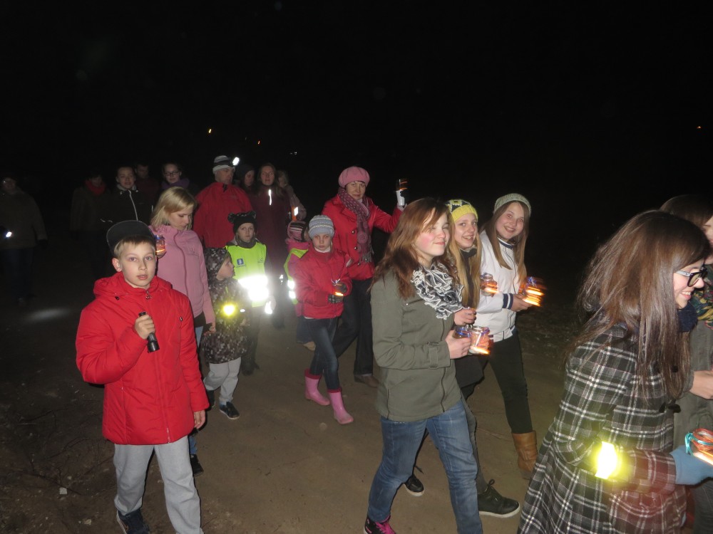 Cilvēkiem līdzi bija dažādi gaismas izstarotāji-citam lukturītis, citam laterna, citam svecīte. Arī skolēni bija aktīvi gatavojušies šim pasākumam: uzzīmējuši afišas(Ieva Cedere), apkrāsojuši trauciņus-svečturīšus, uzvārījuši tēju.
