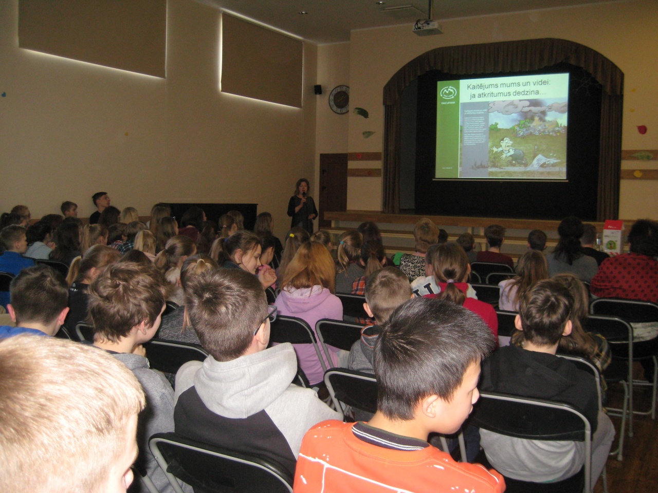 Pirmdien, 5.martā, pamatskolas pašpārvaldes dalībnieces Kate un Veronika vadīja izglītojošu prezentāciju par tēmu “Atkritumu šķirošana”. Pasākumā jaunāko klašu skolēni uzzināja daudz jaunumu un atkārtoja arī sen zināmas patiesības pat atkritumu samazināšanas iespējām un arī pareizas atkritumu šķirošanas noteikumus un ar skolotāja Edgara Bērziņa palīdzību trenējās šķirot atkritumus.