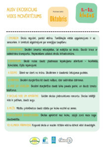Šajā gadā ekopadome uzdeva 5.-12. klases skolēniem veikt vides novērtējumu. Katrai klasei bija jāizvirza 4 aktīvisti, kuri divu nedēļu laikā veica šo pētījumu.