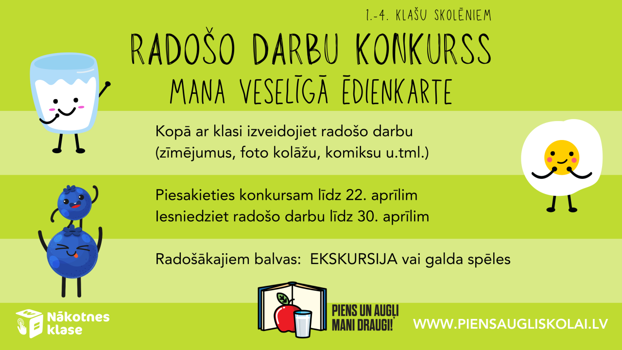 #KONKURSS “Mana veselīgā ēdienkarte” – aizraujoša iespēja 1. – 4. klasēm izpaust savu radošumu un zināšanas par veselīgu uzturu!