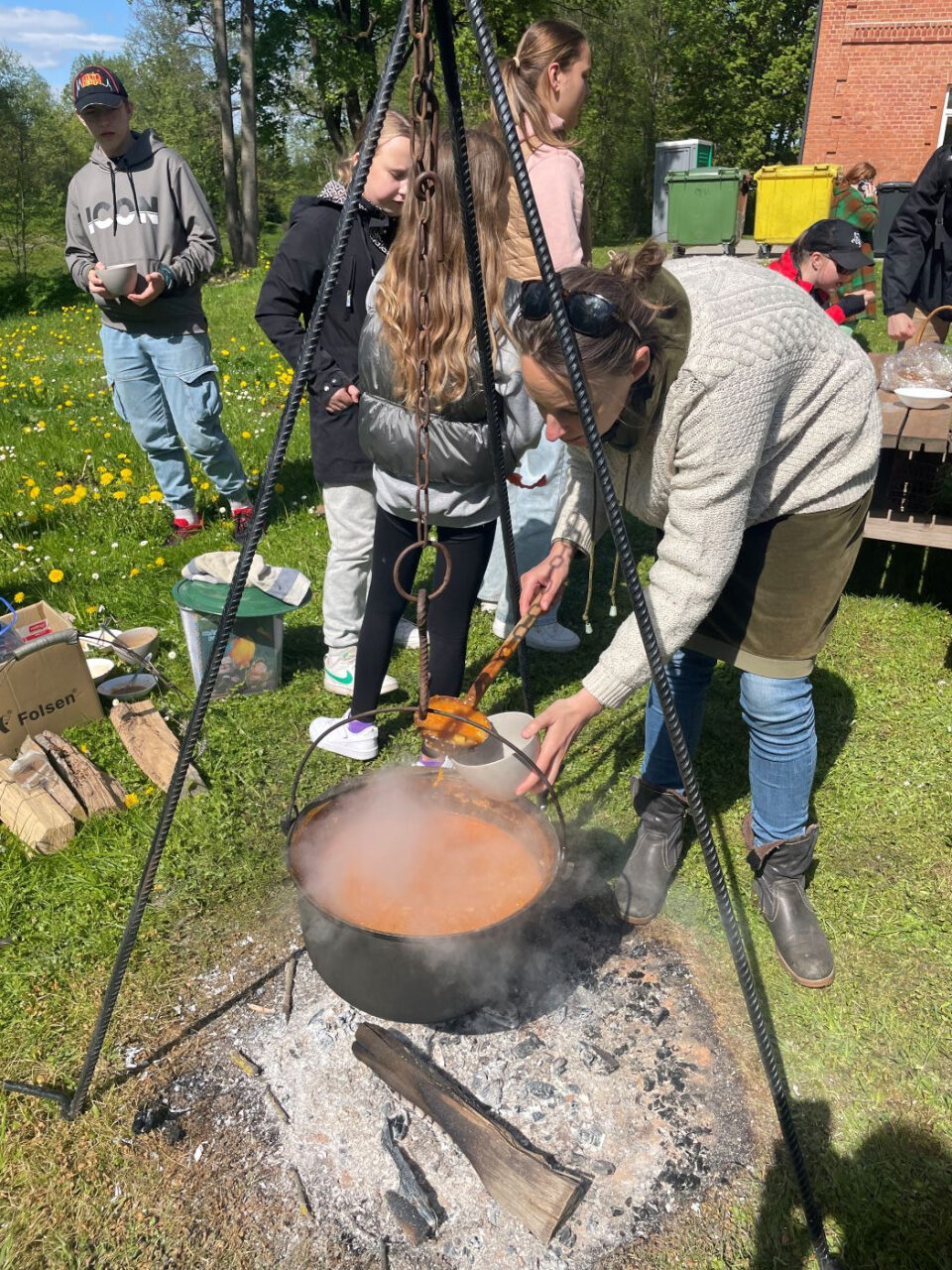 Noslēgumā visi varēja baudīt gardu zupiņu. Izspēlējām pēdējo spēli, ko mums vadīja Diāna no Jauniešu brīvā laika centra. Un tad jau uz atvadām pasniedzām katram dalībniekam gardās dāvaniņas.