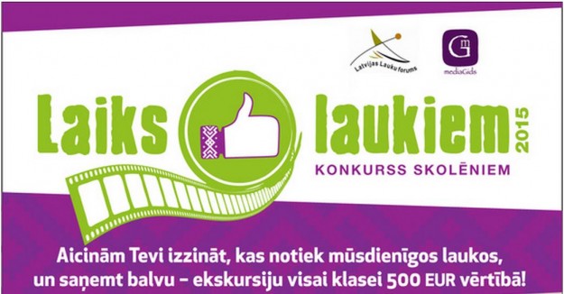 Līdz 2015. gada 30. oktobrim norisinās konkurss „Laiks laukiem 2015!”, kurā aicinām 1. -12. klašu skolēnus aktīvi izzināt un pastāstīt citiem, kas notiek mūsdienīgos laukos. Balva saturiski atbilstošāko un radošāko darbu autoriem ir ekskursija visai klasei 500 EUR vērtībā.