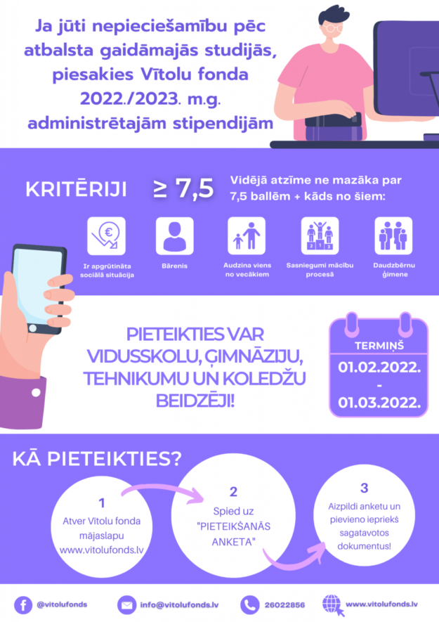 Plašāka informācija par stipendiju: https://www.vitolufonds.lv/pieteiksanas-stipendijai.