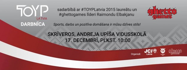 TOYP Darbnīcas jeb TOYP balvas saņēmēju tikšanās ar jauniešiem reģionos ir starptautiskā labdarības projekta TOYP Latvia otrais posms. Šoreiz TOYP LATVIA DARBNĪCA notiks Skrīveros sadarbībā ar GHETTO GAMES līderi un TOYP Latvia 2015 balvas saņēmēju Raimondu Elbakjanu. Darbnīcas devīze – sports, darbs un pozitīva domāšana ir mūsu dzīves stils! Uz tikšanos Skrīveros! Lai veicinātu pasākuma redzamību, aicinām dalīties ar pasākumu FACEBOOK LAPĀ!