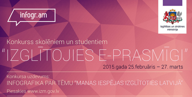 Gatavojoties E-prasmju nedēļai, Izglītības un zinātnes ministrija rīko infografiku konkursu skolēniem un studentiem. Darbu tēma ir “Manas iespējas izglītoties Latvijā”, bet konkursa mērķis – rosināt skolēnos interesi par izglītības iespējām Latvijā un attīstīties, apgūstot jaunas digitālās prasmes. Konkurss tiek rīkots sadarbībā ar digitālo vizuālo risinājumu uzņēmumu „Infogr.am”. Konkursā aicināti piedalīties skolēni vecuma grupās no 6. līdz 9. klasei, no 10. līdz 12. klasei (1.-4. kurss profesionālajās skolās), kā arī 1.-4. kursa augstskolu studenti.