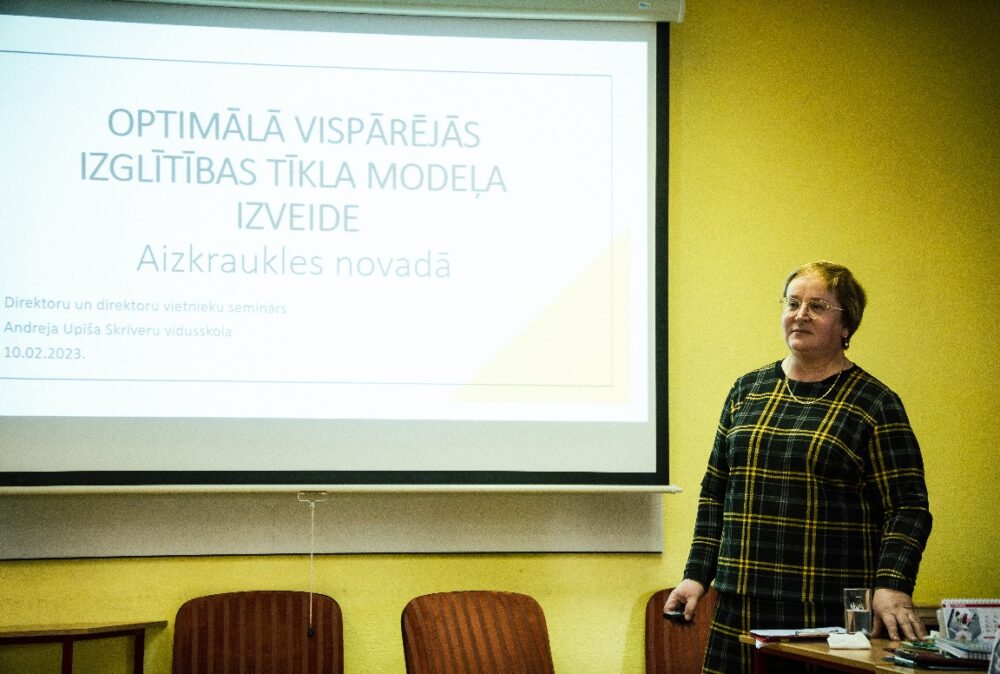 2023.gada 10. februārī Andreja Upīša Skrīveru vidusskolā notika seminārs Aizkraukles novada vispārējās izglītības iestāžu direktoriem un viņu vietniekiem izglītības jomā, kurā piedalījās skolu direktori un vietnieki no visām Aizkraukles novada skolām, kā arī Aizkraukles novada domes Izglītības, kultūras un sporta jautājumu komitejas priekšsēdētāja vietnieks Arvis Upīts.