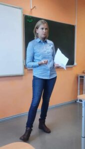 Lelde Sotniece sāka ar sevis iepazīstināšanu, uzdodot mums jautājumu: ”Ko jūs gribētu vairāk uzzināt?” Uzklausot atbildes, viņa secināja, ka gan jauniešu, gan pieaugušo intereses lielākoties sakrīt. Pastāstīja par saviem skolas gadiem Skrīveros un Rīgā, kā piedalījās sabiedriskajās aktivitātēs. Lelde nekautrējās atklāt dažu savu neveiksmju iemeslus, jo arī negatīva pieredze spēj dot stimulu pēc tam sasniegt daudz vairāk un pat gūt lielu gandarījumu. Leldei ļoti patīk dziedāt un ceļot, un to viņa ieteica darīt arī mums – devītklasniekiem. Leldei galvenais ir dzīvesprieks, gandarījums par padarīto un stiprā saikne ar ģimeni.