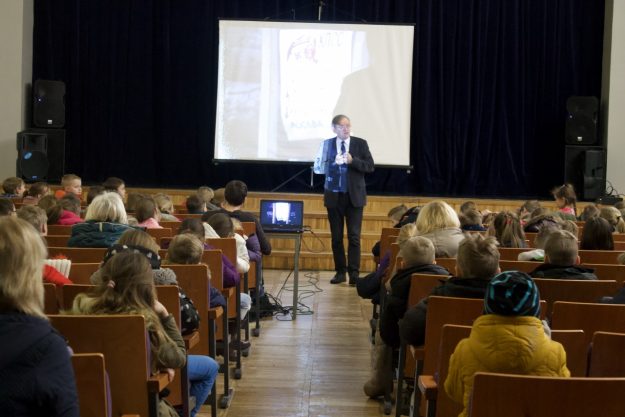 23.janvārī AUSV vidusskolā projekta Nr. 8.3.2.2./16/I/001 “Atbalsts izglītojamo individuālo kompetenču attīstībai” ietvarā, viesojās Latvijas Universitātes lektors Kalvis Salmiņš. Viņa vadīto Lekciju cikls bija paredzēts 10.klases skolēniem, kuru mācību tēma uz doto brīdi bija ” Planēta Zeme un tās pavadoņi”. Taču šīs lekcijas apmeklēja arī daži 9.klases interesenti.