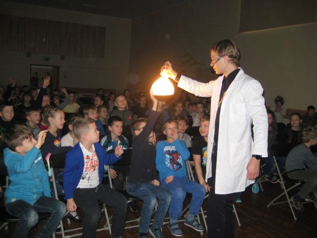 8.februārī Andreja Upīša Skrīveru vidusskolā notika tehniskās jaunrades diena 2. -9. klašu skolēniem. Projekta “ Atbalsts izglītojamo individuālo kompetenču attīstībai“ (Nr. 8.3.2.2./16/I/001) ietvaros, SIA “Laboratorium” jaunieši demonstrēja brīnumainas lietas un uzsvēra, ka tie, kuri mācās un pārzina tādas zinātnes kā fiziku un ķīmiju, var šos brīnumus radīt. FOTO galerija