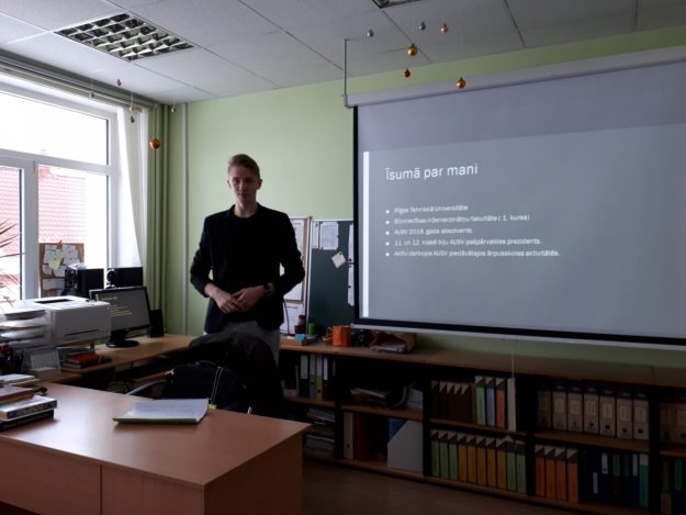 12.klašu skolēni tiekas ar skolas absolventu A.Burku