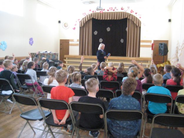 Sākot jauno mācību gadu, kārtējo reizi 1.-2. un 3.-4. klašu skolēniem tiek atgādināts, ka skolēnu drošība ir viņu pašu rokās.6.septembrī uz skolu ieradās nepilngadīgo lietu inspektore Sanita Zīmele, lai vēl un vēl liktu bērniem apdomīgi uzturēties uz ielas, skolā un ejot uz mājām. Skolēni saņēma arī jaukas dāvaniņas: pildspalvas, spēles par drošības noteikumiem. Paldies inspektorei Sanitai par saistošo un interesanto stāstījumu!