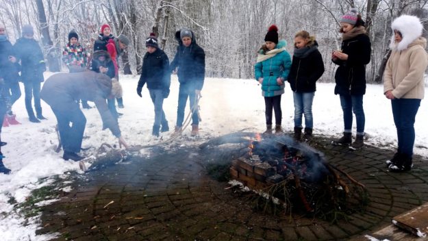 Trešdien, 14.decembrī, 5.b klase brauca uz muzeju “Kalnu ziedi.” Aizbraucot tur iegājām muzejā un redzējām daudz tekstilmozaikas izstrādājumus. Tur bija arī no auduma veidota glezna ar Renāra Kaupera portretu. Tad mēs gājām ārā, grabinot, grabuli un velkot, bluķi savācām nelaimes un nedarbus. Sadedzinot bluķi, reizē sadedzinājām arī savus nedarbus. Tad gājām rotaļā ”Vilks un kaza.