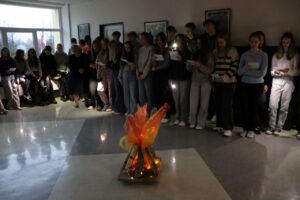 Pirmdien, 20. janvārī, mēs, skolēni un skolotāji, pulcējāmies skolas otrajā stāvā un kopā klausījāmies par barikāžu laiku pie skaista ugunskura dekora un mobilo tālruņu gaismām, attēlojot barikāžu sajūtu, pieminot tos, kuri aizstāvēja mūsu valsti, un tos, kuri krita mierīgā pretošanās procesā pret pretinieku vardarbību.