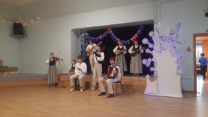Kopā mēs dziedājām divas dziesmas – ‘’Zibsnī zvaigznes aiz Daugavas’’ un ‘’Saule, Pērkons, Daugava’’.