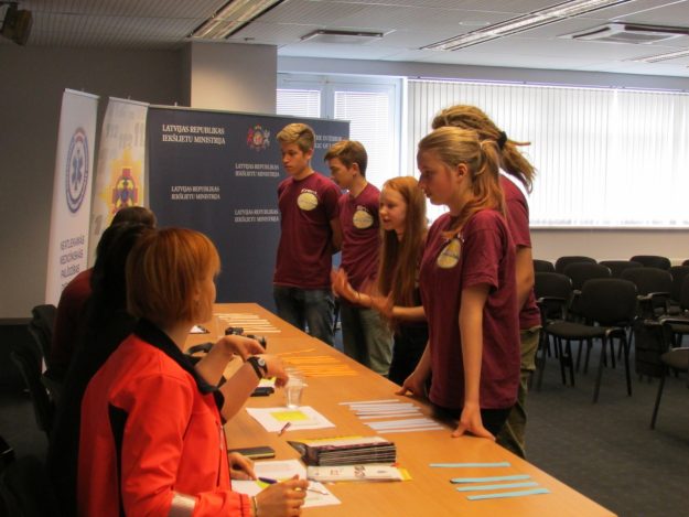 Trešdien, 27. aprīlī, no plkst. 10.00 līdz 15.00 Iekšlietu ministrijā notika informatīvi izglītojošā projekta “Esi drošs – neesi pārdrošs” konkursa pusfināls, kurā piedalījās 20 komandas no Latvijas skolām un demonstrēja savas zināšanas par dažādiem drošības jautājumiem. Šo komandu skaitā bija arī Andreja Upīša Skrīveru vidusskolas 8.klases komanda Agate Albekeite, Austra Pumpure, Ērika Vaira Leopolde, Ernests Matvejevs un Māris Arcihovičs.