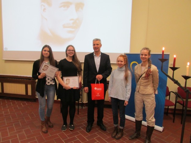 Apsveikuma vārdus teica Eiropas Parlamenta deputāts Artis Pabriks, Daugavas Vanagu Centrālās Valdes priekšsēdētājs Andrejs Mežmalis, pulkveža Oskara Kalpaka piemiņas fonda valdes locekle Kaiva Krastiņa un NVO In Patria Credere valdes locekle Silvija Kaugere.  Diplomus par ļoti labiem  literārajiem darbiem saņēma mūsu skolas 8.klases meitenes Laura Jungmane, Agate Albekeite un Patrīcija Zālīte.