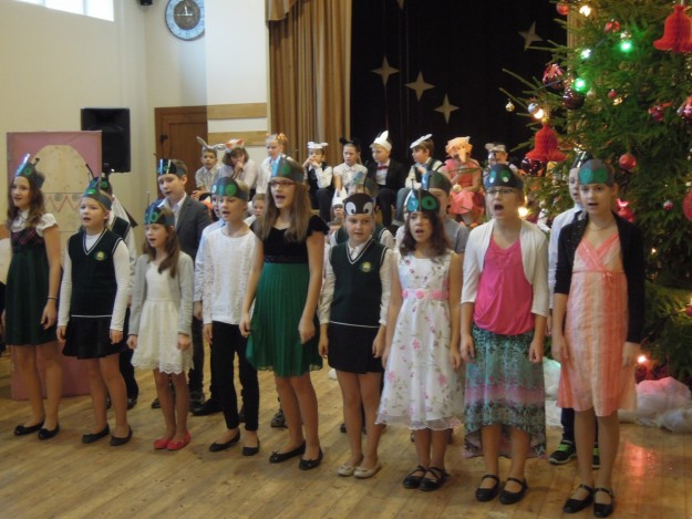 Dziesmas un dejas pieskandina skolu, svinot Ziemassvētkus