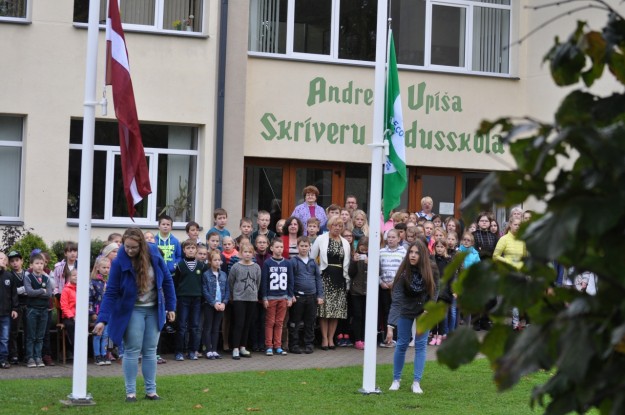 Pirmdien, 28.septembrī, notika svinīgā līnija par godu karogu mastu atklāšanai, kura laikā tika pacelti EKO skolas un, protams, Latvijas Valsts karogi. “Nepieciešamība pēc karogu mastiem bija jau sen, bet līdz ar EKO skolas statusa iegūšanu, tā aktualizējās vēl vairāk,” uzsver direktors Aldis Rakstiņš. Karogu mastus dāvināja skolas absolvents Aivars Millers. 10.a klases skolnieces Beāte un Vanesa uzsver, ka tas ir liels gods, ka pie skolas beidzot ir izkārti karogi, kas nepārprotami norāda, ka rūpējamies par patriotismu un galu galā skola pēc karogu mastu novietošanas ir daudz cēlāka. Foto galerija